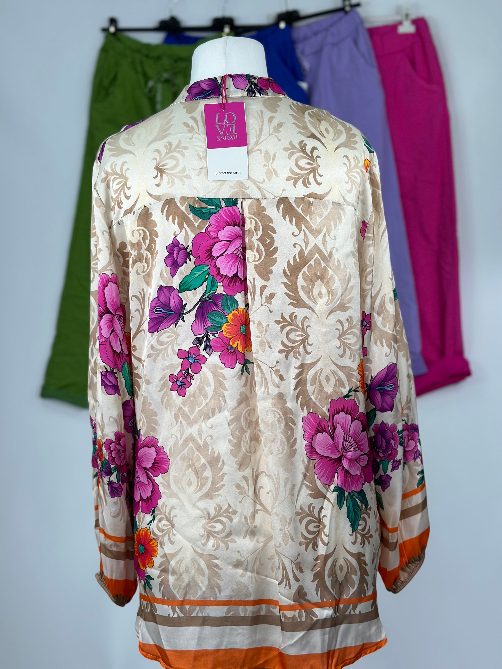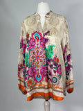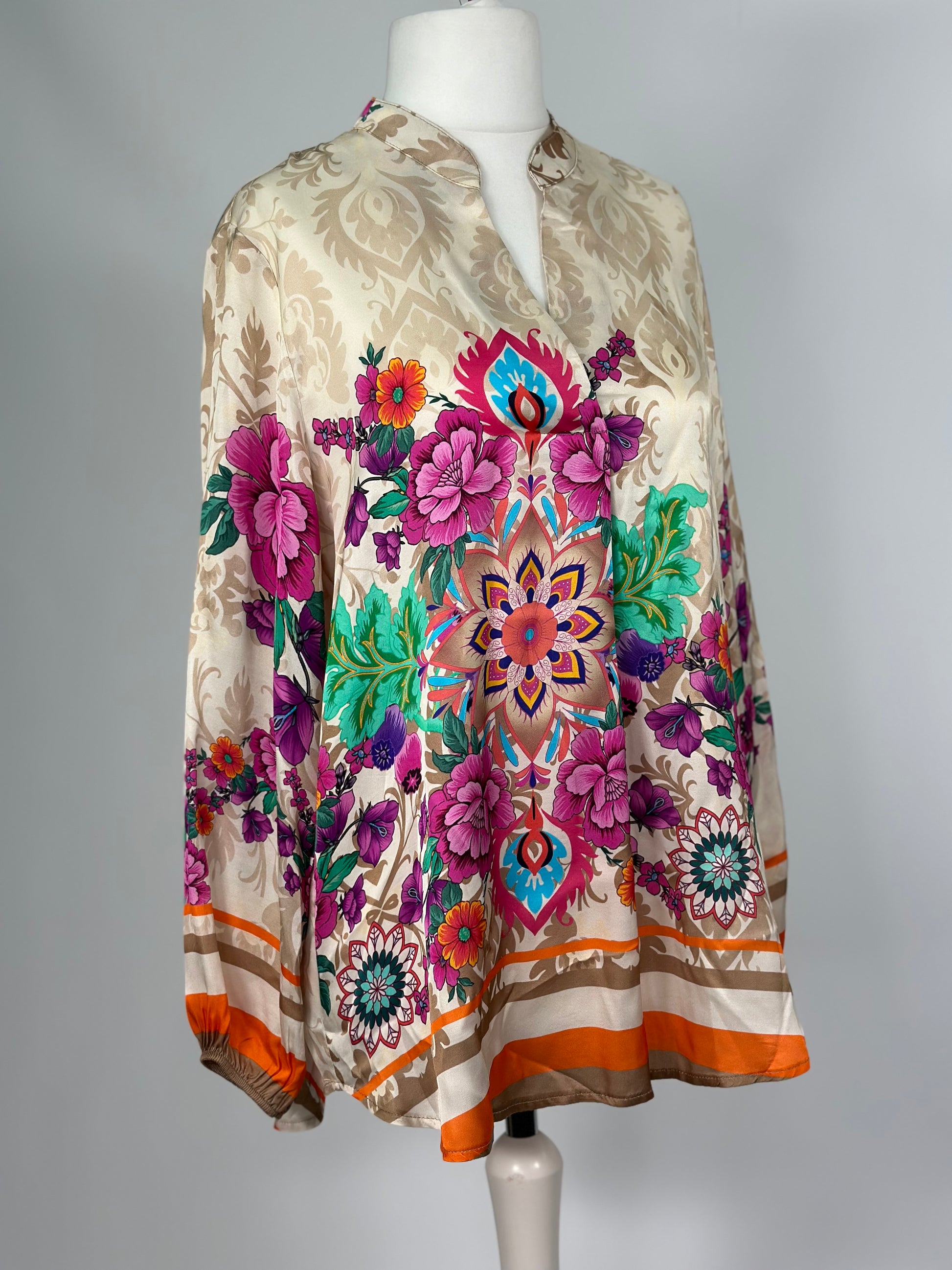 Ornament Print Bluse Retro Satin Vintage Pink Orange